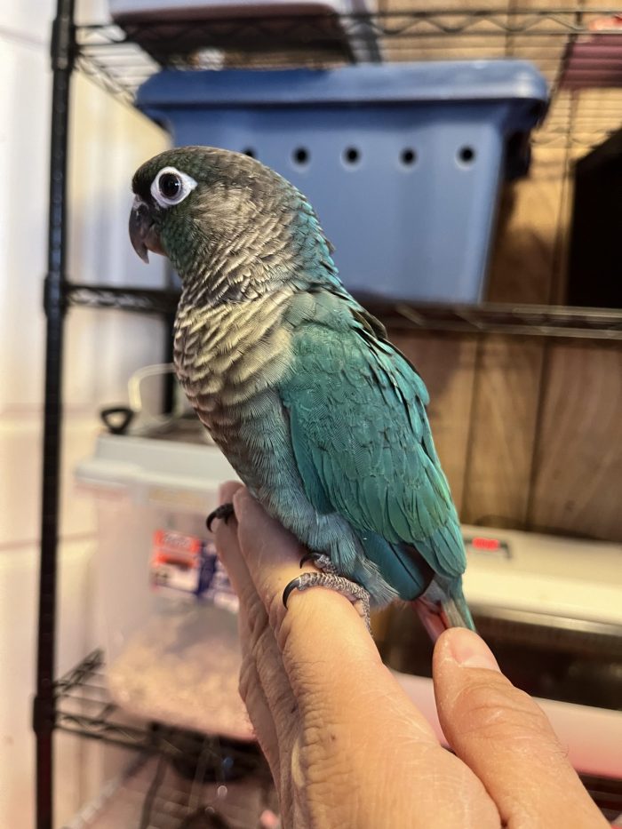 Green cheeked conures make excellent pets; They are little clowns, always full of energy. These birds love to hang upside-down their cage, always willing to play with their owners. Green cheeks are energetic creatures, so keep an eye on your bird at all times. This is a good bird for children and adults. However, keep in mind that any bird can bite sometimes, if he bites you one time and doesn’t mean he will try to do it every time.